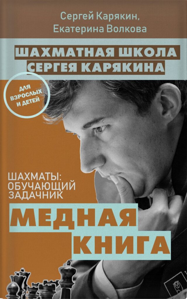 «Медная книга» – первая книга серии шахматных задачников ведущего шахматиста мира Сергея Карякина. Книга-задачник предназначена для начинающих шахматистов и содержит более 400 заданий на мат в один ход. Задания расположены по возрастанию сложности и помогут юному шахматисту натренировать умение находить мат в один в шахматной партии быстро и верно.